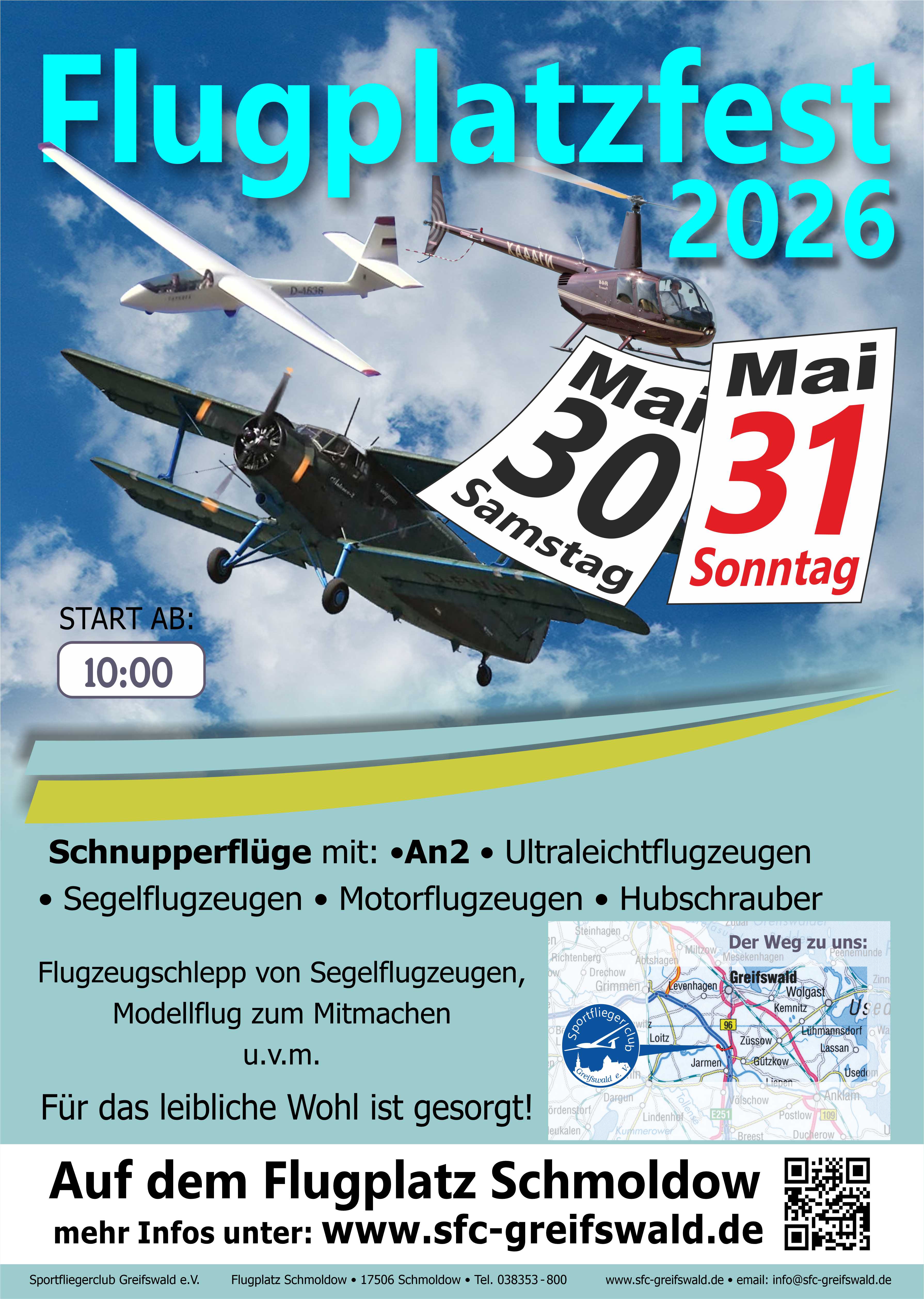 | Der Sportfliegerclub Greifswald e.V. begrüßt Sie auf seinen Webseiten und heißt Sie Herzlich Willkommen am Himmel von Mecklenburg-Vorpommern! |